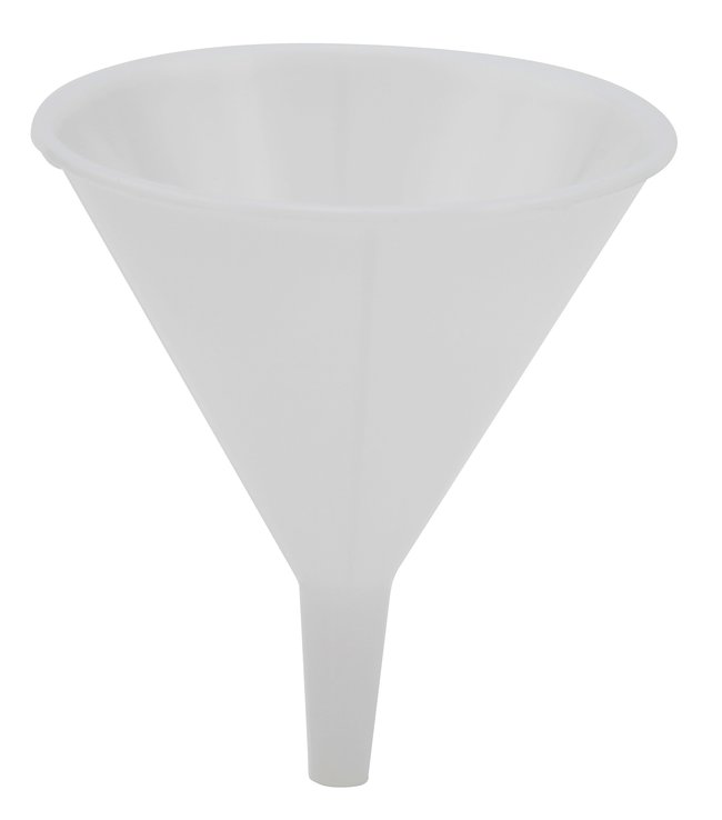 Made from polypropylene or high density polyethyleneGood for pouring thick liquidsMaximum funnel dia.: 6.38 in. (16.2cm) with very large throat opening