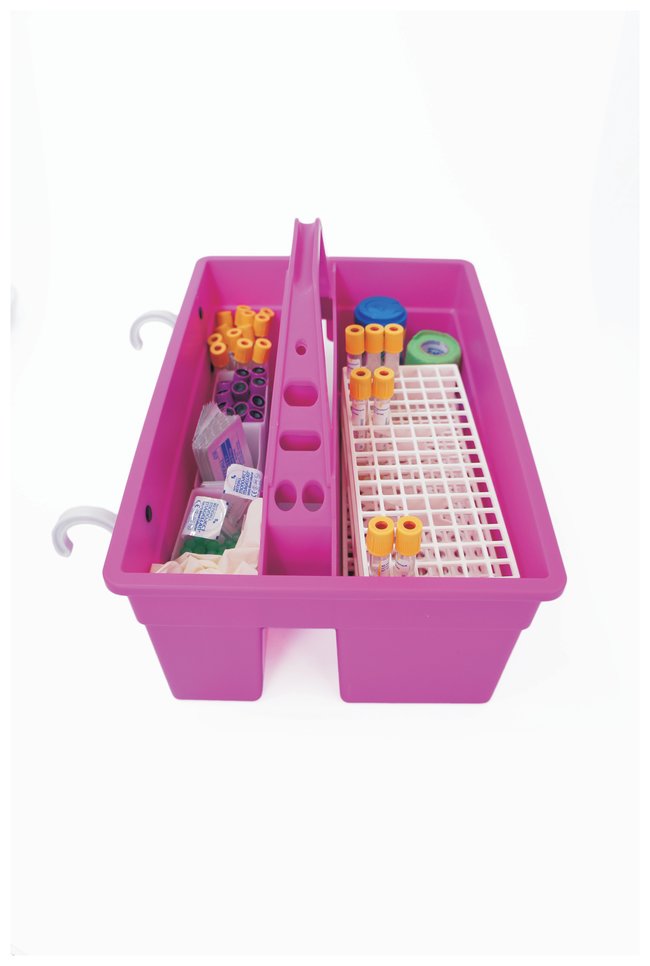 Hooktote Phlebotomy Trays, Center channel and hook design let the user hang this tray over most rails or foot boards, Each