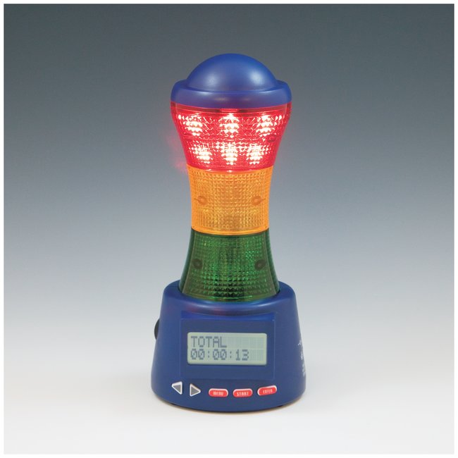 Time tracker has three colored lights which help visually indicate the status of testsTimer features 180° viewing and a large, easy-to-read LCD display so work can continue without watching the timerSix different sounds with volume control can be used to alert the user on the progress within various stagesRequires 4 AA batteries or AC Adapter (sold separately)Product Dimensions, W x D x H: 4.25 x 4.25 x 9.25 in. (10.8 x 10.8 x 23.5cm)