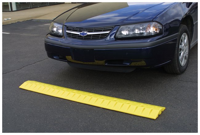 Ideal for use in congested areas where speeding is a problemHigh-visibility HDPE yellow bump withstands chemicals and weather, eliminating the need to repaintDual 1.25 × 0.88 in. (3.18 × 2.22cm) channels to protect air and water lines and electrical cable from damageLoad tested to 20,000 lb. per pneumatic tire