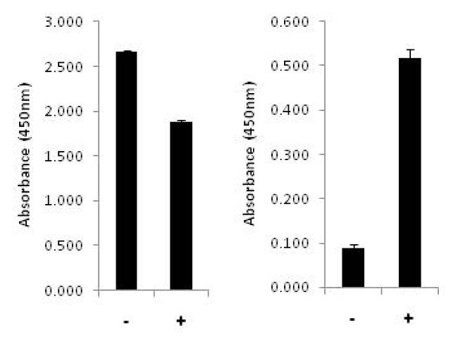 The InstantOne™ ELISA is specifically engineered for accurate measurement of total and phosphorylated human NFkB p65 in cell lysates. Detection of mouse and rat NFkB is expected. The InstantOne™ ELISA kit allows for fast analysis of samples in approximately one hour. All reagents used in a traditional sandwich ELISA are added in solution to a plate followed by a wash step and detection with the TMB colorimetric substrate.NF-kappaB (Nuclear Factor kappa B) is a nuclear transcription factor found in all cell types and is involved in cellular responses to stimuli such as stress, cytokines, free radicals, ultraviolet irradiation, and bacterial or viral antigens. NF-kappaB plays a key role in regulating the immune response to infection. Consistent with this role, incorrect regulation of NF-kappaB has been linked to cancer, inflammatory and autoimmune diseases, septic shock, viral infection and improper immune development. There are five members in the NF-kappaB family: NF-kappaB1, NF-kappaB2, RelA (also named p65), RelB, and c-Rel. The most common form of NF-kappaB is the p50/RelA heterodimer, although other forms of NF-kappaB dimers, such as p50/p50, p52/p52, p52/RelA, p50/c-Rel, c-Rel/c-Rel, p52/RelB, and p50/RelB, have also been identified in some types of cells. The primary role of NF-kappaB is to maintain normal cellular functions that range from cell-to-cell communication to cell motility, cell cycle progression, and cell lineage development. The activity of NF-kappaB is tightly regulated by interaction with inhibitory IkappaB proteins.