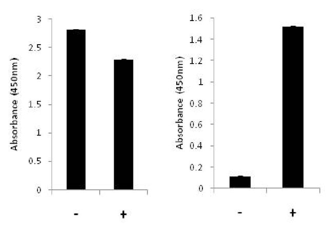 The InstantOne™ ELISA is specifically engineered for accurate measurement of total and phosphorylated human STAT3 in cell lysates. Detection of mouse and rat STAT3 is expected. The InstantOne™ ELISA kit allows for fast analysis of samples in approximately one hour. All reagents used in a traditional sandwich ELISA are added in solution to a plate followed by a wash step and detection with the TMB colorimetric substrate.STAT3 belongs to the family of STAT (signal transducers and activators of transcription) proteins which are phosphorylated by receptor associated kinases, translocate to the nucleus, and act as transcription factors in response to cytokines and growth factors. Coactivators such as CREB-binding protein are required for the transcriptional activation by STAT3. STAT3 can also be activated by Interferon-alpha, Interferon-gamma, EGF, PDGF and IL6. Phosphorylation on tyrosine 705 by JAK1 and JAK2 is essential for STAT3 dimer formation, nuclear translocation, and DNA binding activity. In humans, the STAT3 gene is located on the q arm of chromosome 17. STAT3 has been shown to be activated by IFN-alpha but not IFN-beta. The transcription factors associated with STAT3 are c-Jun and cyclic AMP-responsive enhancer binding protein (CREB). STAT3 mediates the expression of a variety of genes in response to cell stimuli, and thus plays a key role in many cellular processes such as cell growth and apoptosis. The small GTPase Rac1 has been shown to bind and regulate the activity of STAT3 while the PIAS3 protein is a specific inhibitor of STAT3. Three alternatively spliced transcript variants encoding distinct isoforms of STAT3 have been described. Deletion of the STAT3 gene in knock-out mice was lethal at the early embryonic stage.