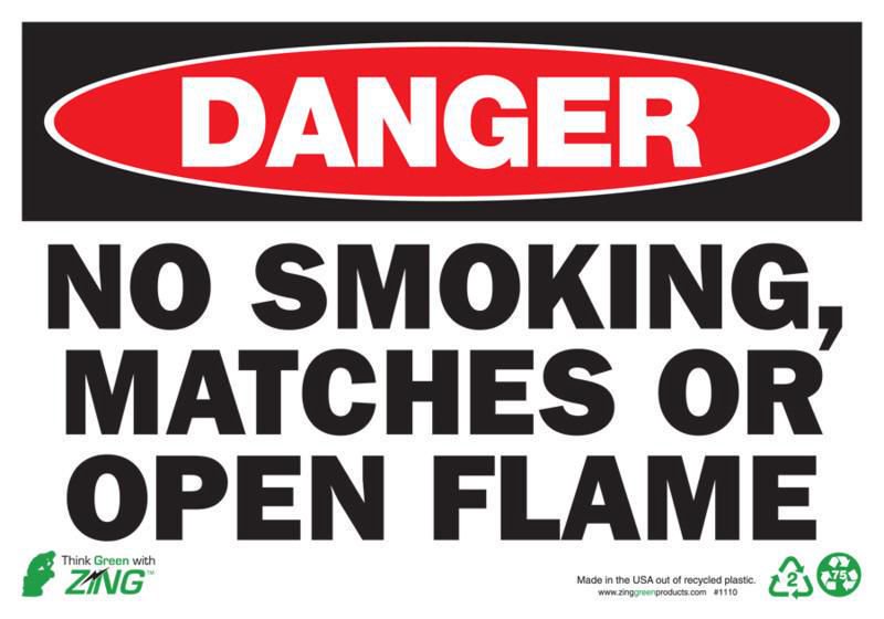 Sign Danger No Smoking Plastic 7X10In^ Danger Sign, Recycled Plastic, No Smoking, Matches Or Open Flame, Pre-Drilled Mounting Holes & Adhesive Tabs, Impact And Uv Resistant, Ul Validated For Recycled Content, 7X10I
