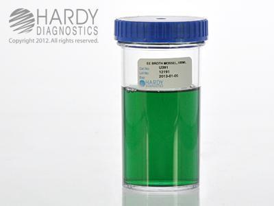 EE Broth Mossel^ EE Broth Mossel, USP, 180ml wide mouth jar, 100ml fill, Order by the package of 12, By Hardy Diagnostics. MINIMUM ORDER: 3 packs. For use in the selective enrichment, Isolation, And enumeration of Enterobacteriaceae, Particularly from foods.