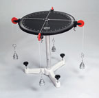 Machined aluminum table, 15.75 in. dia. (40cm)Raised-rim table has graduated 360° markingsVertical support rod equipped with leveling screwsBody under study, ring in center of table, fastened by cords passing over four attached pulley