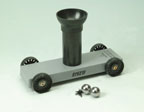 Demonstrates that the horizontal component of velocity of a body thrown vertically upward from another body moving horizontally is the same as that of the body moving horizontally — and independent of the vertical component of velocity.Heavy, metallic barrel mounted vertically on aluminum carPlastic wheels with ball bearings to minimize frictionSpring-loaded piston ejects ball to two different height