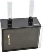 Comprises of metal box 220L x 100W x 165mm HWith sliding front,Consists of two glass chimney, standing over tubulure at top of boxCandle holder is fixed at the top of the base of box beneath the left hand chimney
