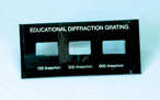 Illustrates how its properties are dependent upon the number of lines per unit length.Card mount, 3.5 × 1.6 in. (90 × 40mm), holds three 16 × 9mm aperturesEach aperture contains a different diffraction grating replicaGratings are 100 lines/mm, 300 lines/mm and 600 lines/mm and are protected by cover glasse