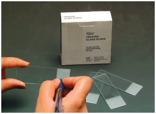 Pre-cleaned, for use in laboratories. EISCO Frosted Microscope Glass slides are made from clear, optically flat glass.