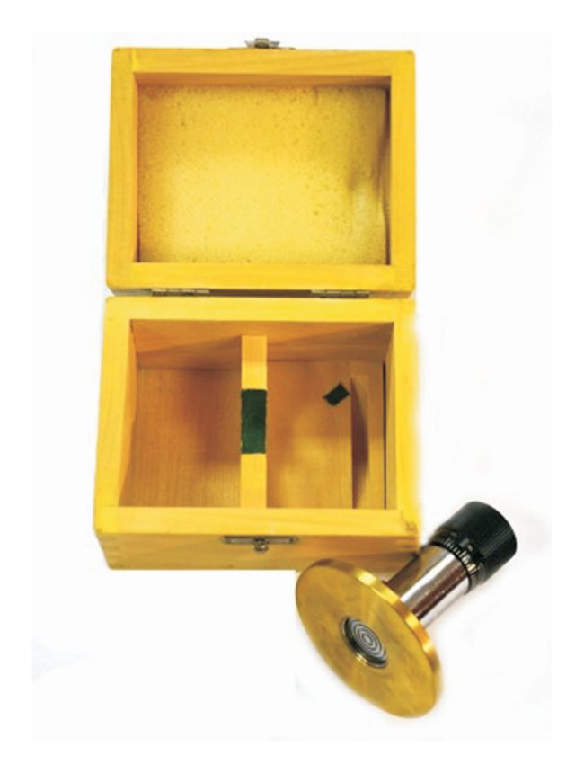 Brass diameter plate: 75mm10 microns per clickOverall height: 85mmLength: 16.5cm (6.5 in.)Knife or clamp are not includedSupplied in wooden hinged case
