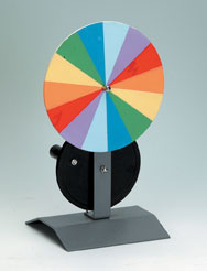 Multicolored disc is mounted on a driving wheel secured to a metal standHand crank drives the belt that rotates the color wheelDisc dia.: 7.1 in. (180mm)