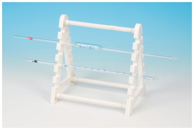 Can hold 12 pipettes, 6 on each side, in a horizontal positionStand has two sides which are attach to each other with three metallic rods coated with polypropylene
