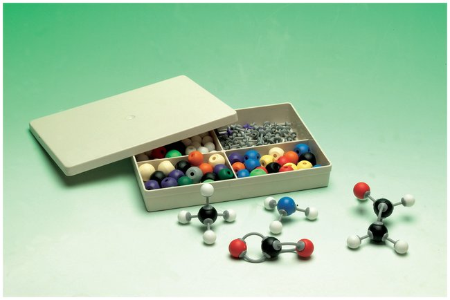 Basic organic chemistry molecular model set contains 30 colored atoms and 24 gray bonds in a convenient and reusable plastic case.