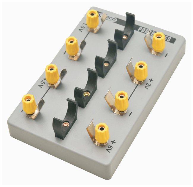 Allows you to connect up to 4 D cell batteries in series or parallel (comes configured in series, can be converted though - may require additional wires)Perfect for electronics, physics, or even biology experimentsBatteries and cables not includedVariable battery power supply