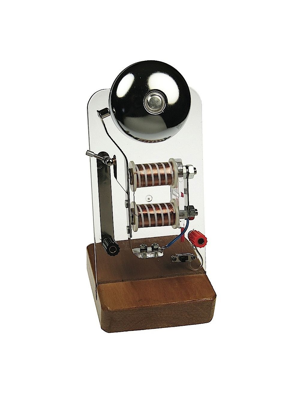 This well constructed and attractive electric bell model is mounted on a clear acrylic plate and a finished wooden stand to allow the functional parts to be clearly seen. Model operated on 6V DC with an on/off switch, adjustable contact screw, and binding posts for easy connection. Includes activity guide.