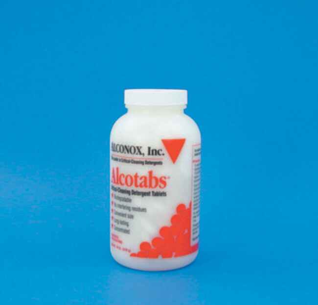 Alcotabs effervescent tablet form, use in syphon type washer rinsers for the cleaning of pipettes and test tubes.