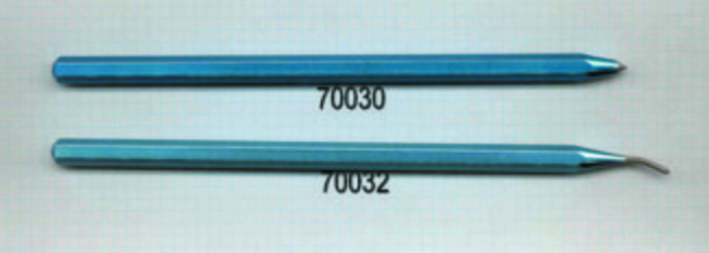 Sturdy scribers are in wide use throughout the laboratory. It leaves a permanent marking on virtually any surface, including metal, glass, or plastic. Each Scriber features a hexagonal aluminum pencil shaped body, mill finish, natural diamond tip and protective cap. Overall length 6", shank length 1/8", handle 1/4" x 5.5", 60 deg tip finish