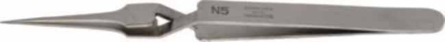 Type N5 tweezers have super thin tips. Length is 108 mm. Tip: 0.05mm W x 0.01mm thick. Dumoxel has best resistance to corrosion and excellent resistance to organic acids. 95% antimagnetic. Autoclave sterilize at 270 deg C.