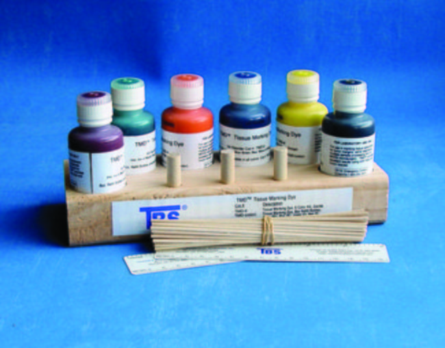 A specialized dye for marking tissue biopsies and pathology specimens. For use with frozen or fixed tissues. Permanently mark the margins of excised surgical specimens for exact orientation. Specially formulated binding pigment that evenly coats the tissue without penetrating the tissue surface. The marking dyes do not interfere with diagnostic interpretation due to the fact colors are not similar to standard histopathology dyes. Fast drying, easy-to-use, and ideal for work with frozen sectioning.