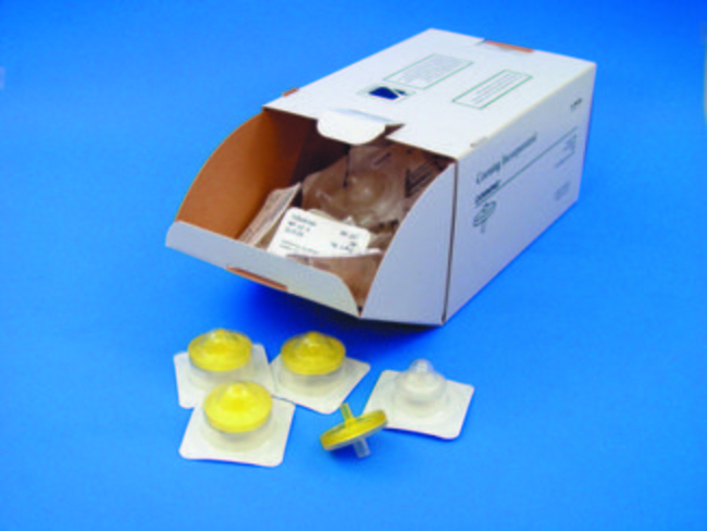 Membrane choices include: Regenerated Cellulose (RC), Polyethersulfone (PES), Surfactant-free Cellulose Acetate (SFCA), Nylon (NY), and "PTFE" Fluourocarbon Resin. Excellent chemical resistance, low protein binding, and the best DMSO copatibility. Syringes filter with high burst strength for assured performance. Manufactured to ISO 9002 and GMP standard and 100% integrity tested. These disposable filter units are ideal for tissue culture media, buffer solution, stain solution, biological fluids and most other aqueous solutions and reagents that are used daily in the EM lab. Pore size and membrane type are printed on every syringe and the filters are certified non-cytotoxic and non-pyrogenic. Sterile syringe filters are individually blister-wrapped in cases of 50. Non sterile syringe filters are packaged in cases of 50. Polypropylene housing.