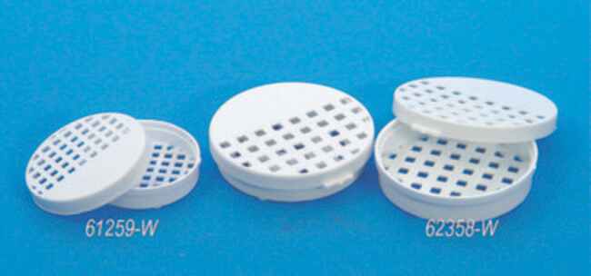 These one piece plastic capsules are hinged and perfectly aligned, offering convenience and ease of use. Both the top and the bottom of the capsule have an open mesh offering maximum fluid flow during processing. A frosted marking surface assures permanent identification. These capsules are commonly used with the Embedding Ring System. They are available in two sizes and five colors. To use simply place the tissue in the capsule, close the cover to lock, and the sample is now ready for processing. 29 (dia)x 6 mm deep are for use with biopsy tissue.