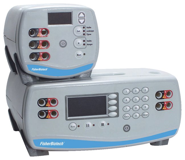 Key FeaturesChoice of operating modes—constant voltage or constant current output modes with automatic crossover between modes; programmable models add a constant power mode Automatic shutoff (at run's end) saves time, energy and reduces errors Automatic recovery (after power failure) eliminates need to restart the unitAdditional FeaturesBacklit LED display, mode indicator lights, internal timer and multiple output jacksSoft-touch keypad controls allow user to select modes and output levels, set timer and start/stop operation Power-off memory retains settings after shutdown Lightweight, stackable design allows use of multiple units while saving space on the benchtopLocking kickstand permits positioning the unit at an angle for better viewingStandard safety features include no-load and failure notification, arc and ground leak detection, overvoltage protection and jacks that are set away from controlsNonskid rubber feet provide stabilityCompact Model FB300QRuns up to 3 gels at once at either constant current or constant voltage Uses less surface area than a sheet of paper Utilizes UP/DOWN arrow controls Ideal for SDS-PAGE, DGGE/CDGE and DNA/RNA submarine electrophoresis High-Current Model FB200QUses a numeric keypadPerfect for high-current electroblotting (Western tank and semidry, Southern and Northern) and SDS-PAGE applications Programmable Models FB1000Q and FB3000QEnhanced features include a third, constant power mode and remote temperature probe Both models have a numeric keypad Nine-program memory with “list program” function for quick recall makes these units ideal for multi-user labs or multiple repetitive operationsFB1000Q is designed for isoelectric focusing, SDS-PAGE and native SDS-PAGE FB3000Q is ideal for DNA sequencing and high-voltage electrophoresis applicationsAll outputs run with the same settings. Fisher Service Division offers several types of service agreements for the equipment featured here. For details on these agreements, equipment repairs, and calibration services, see the front of the catalog. For immediate assistance, call 1-800-395-5442.Service PlanService agreement available.ComplianceCSA approvedWarranty and Services12 month