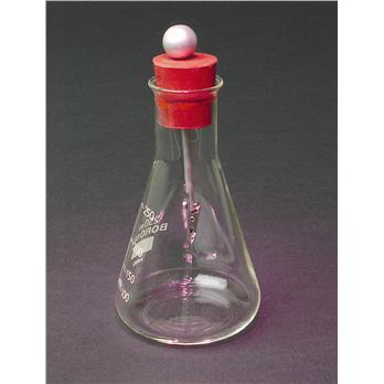 This electroscope is housed in a 250ml borosilicate glass flask with a metal rod attached to a rubber stopper. A pair of aluminum leaves is suspended from an alligator clip. The knob on top of the rubber stopper accepts a charge. When the charge enters the flask, the aluminum leaves separate. Also available are rod and alligator clip assembly for use with your own flask and replacement aluminum leaves.