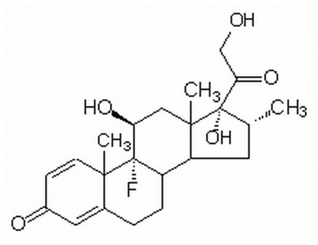 Most active and highly stable glucocorticoid. Causes a reduction in cyclin A and Cdk2 activity, and inhibition of G1/S transition in osteoblasts. Inhibits the phosphorylation of retinoblastoma (Rb) protein. Inhibits the expression of inducible but not constitutive nitric oxide synthase in vascular endothelial cells (IC50 = 5 nM). Enhances active cation transport in aortic smooth muscle cells by stimulating the Na - K pump. Induces apoptosis in human thymocytes.