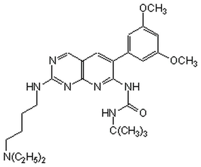The FGF/VEGF Receptor Tyrosine Kinase Inhibitor, PD173074 controls the biological activity of FGF/VEGF Receptor Tyrosine Kinase. Primarily used for Phosphorylation & Dephosphorylation applications.
