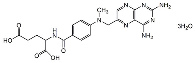 Inhibits thymidylate synthetase, is a nonselective de novo purine synthesis inhibitor, and has a significant toxicity profile including hepatotoxicity, pneumonitis, and bone marrow suppre