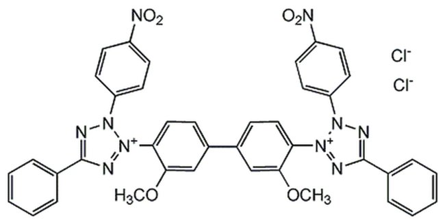 NADPH-diaphorase substrate that competitively inhibits nitric oxide synthase (IC50 = 3-4μM). A well-known scavenger of superoxide anions. Useful as a substrate for alkaline phosphatase, often in conjunction with BCIP (Cat. No. 203788).