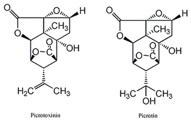 A potent antagonist of GABA receptors (IC50 = 240 nM) at synapses in the central nervous system. Inhibits 35S-TBPS binding to the Cl– channel (IC50 = 1.7μM). Picrotoxin is a mixture of one mole of picrotoxinin and one mole of picrotin.