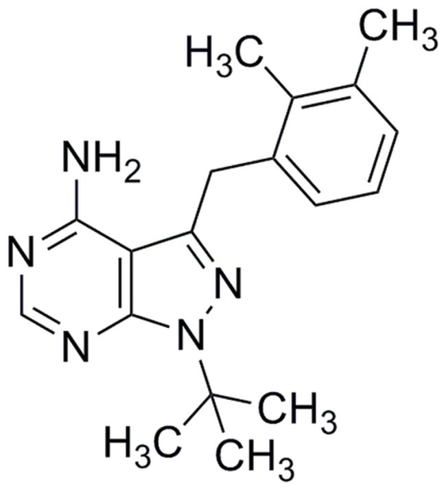A cell-permeable 3-MB-PP1 (Cat. No. 529582) analog that is more effective than 3-MB-PP1 in inhibiting SykM442A S505A ASKA- (analog-sensitive kinase alleles) mediated cellular calcium flux (98% vs. 20% inhibition, respectively, by 1μM 2,3-DMB-PP1 or 3-MB-PP1) in Syk MASA-expressing DT40 cells. Also shown to selectively inhibit L159G ASKA, but not wt, PDK1-dependent GSK3andalpha Ser21 and S6 Ser235/236 phosphorylation upon IGF1 stimulation in mES cells.