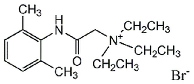 A quaternary lidocaine derivative, permanently charged, and lipophobic. A powerful blocker of voltage-sensitive Na conductance when applied intracellularly. Suppresses the generation of Na -dependent spikes from inside the cell membrane, without affecting Ca2 currents or glutamate-activated currents.