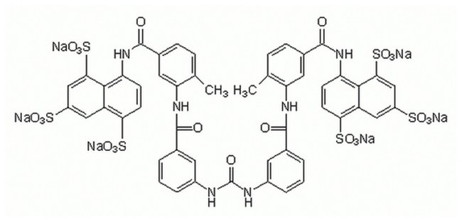 A reversible and competitive inhibitor of protein tyrosine phosphatases. An anti-neoplastic, anti-angiogenic agent that uncouples G-proteins from receptors presumably by blocking their interaction with intracellular receptor domains. Inhibits GDP-GTP exchange, the rate limiting step in the activation of Gα-subunits. A competitive inhibitor of reverse transcriptase. Reported to inhibit topoisomerases I and II. Inhibits Ca2 -ATPase in sarcoplasmic reticulum membranes. Also inhibits the cell-surface binding of various growth factors, including EGF, PDGF, and TGF-β. An inhibitor of phospholipase D (IC50 = 15μM). Reported to interact with ATP-binding enzymes and P2-purinergic receptors. An effective inhibitor of angiogenesis in the calmodulin assay when given in combination with angiostatic steroids.