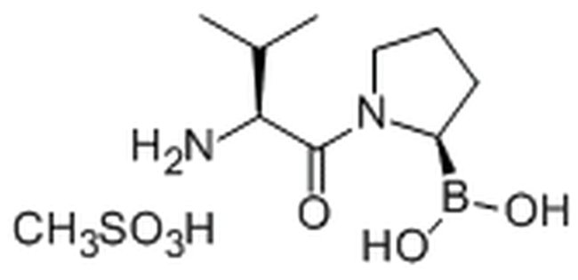 An orally available amino boronic acid dipeptide with antihyperglycemic and anticancer properties. Acts as a highly potent, reversible, and transition state analog inhibitor of dipeptidyl peptidase IV (DPP-IV; IC50 = 26nM; Ki = 180 pM). Also inhibits the activity of other prolyl peptidases (IC50 = 15nM for DPP-II; and Ki = 1.5nM and 760 pM for DPP8 and DPP9, respectively) and at much higher concentrations affects the activities of quiescent cell proline dipeptidase (QPP, DPP7; IC50 = 310nM), PEP (IC50 = 390nM) and fibroblast activation protein (FAP; IC50 = 560nM). However, it does not inhibit the activity of trypsin, chymoptrypsin, thrombin, plasmin, tryptase, leukocyte elastase, and plasma kallikrein even at high levels (∽100μM). Promotes hematopoiesis and the growth of primitive hematopoietic progenitor cells by increasing the production of G-CSF, IL-6, and IL-11 by bone marrow stromal cells in mice. Although it has no direct cytotoxic effect on tumors in vitro, but oral administration in mice is shown to reduce the growth of syngeneic tumors derived from fibrosarcoma (WEHI164), lymphoma (EL4 and A20/2J), melanoma (B16-F10), and mastocytoma (P815) cell lines and augments antibody-dependent cell-mediated cytotoxicity. Note: In aqueous physiological solutions, it can cyclize in a time-dependent manner causing a 100-fold diminution in its inhibitory potency. However, at lower pH range it remains in an active open chain form. Maximum tolerated dose in mice or rats is ∽ 25μg/kg. Please note that the molecular weight for this compound is batch-specific due to variable water content.