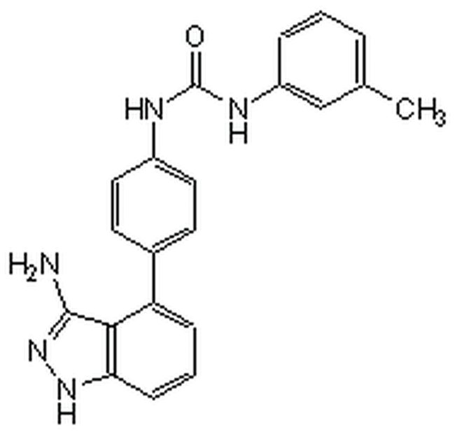 The VEGFR2/Flt3/c-Kit Inhibitor, also referenced under CAS 796967-10-7, controls the biological activity of VEGFR2/Flt3/c-Kit. This small molecule/inhibitor is primarily used for Activators/Inducers applications.