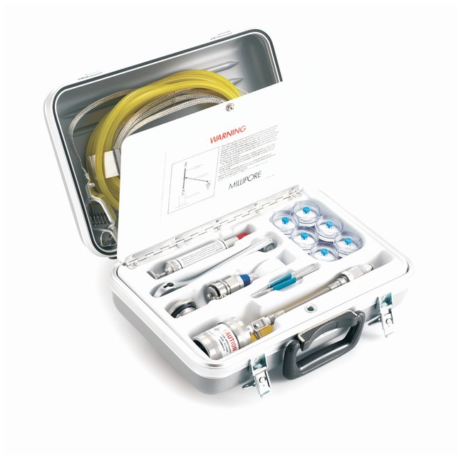 The Fluid Sampling Kit is a complete solution for field-based fluid collection and contamination analysis. The stainless steel sampler assembly plugs into a quick-release valve installed in the system line, which allows a measured quantity of liquid to pass through the monitor. A valved syringe serves as a pump to remove residual liquid from the monitor. Kit is compatible with our 37 mm contamination monitors and matched-weight monitors.For gravimetric analysis, accessory Matched-Weight Monitors eliminate filter pre-weighing before sampling.Features & Benefits:•Sturdy carrying case and stainless steel sampling assembly provide years of in-field service •Fluid Sampling Kit includes 12 Tenite™ contamination monitors Applications:For sampling turbine fuels, water or other liquids through Millipore Contamination Analysis Monitors prior to gravimetric or colorimetric analysis.