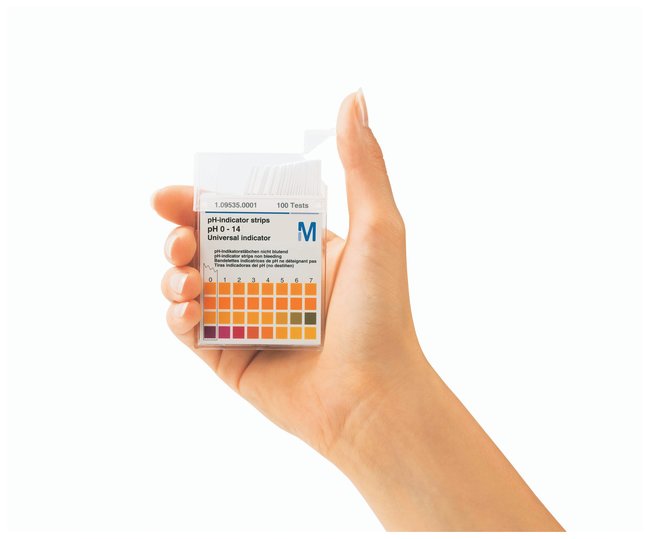 Fit into a pocket and provide easy, rapid results—suited to all media in environmental analysis and industrial in-process controls.Differentiated color gradations for a more precise evaluationTraditional indicator paper or MQuant™ nonbleeding universal strips availableTraditional stripsHigh-quality papers impregnated with indicator or mixed-indicator solutions, cut to size and driedSupplied in a roll format that protects strips against moisture, light or ambient gases for longer storage lifePlastic indicator strips provide differentiated color gradations for a more precise evaluationSpecial indicator dyes covalently bonded to reagent papersIndicator does not bleed, so strips will not contaminate the medium, even if left for long periods of timeLong shelf lifeCan be used for three to five years when stored at 10 to 25°C in a light-protected areaReseal quickly after each useConsistently high qualityTests checked and calibrated using certified buffer solutionsBuffer solutions are traceable to primary reference materials from NIST™ and PTBOrder InfoPackaging: indicator papers come in lengths of 4.8m in roll dispenser; MQuant special indicator pH strips come as strips packed in boxes of 100 tests each.