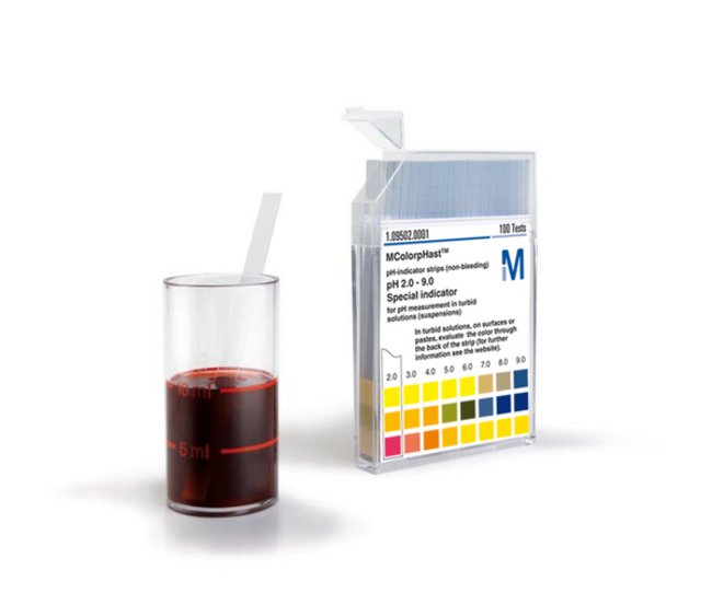 Special indicator for turbid solutions/suspensionsRange: pH 2.0 to 9.0Graduations: 2.0-3.0-4.0-5.0-6.0--7.0-8.0-9.0Order InfoPack of 100 test