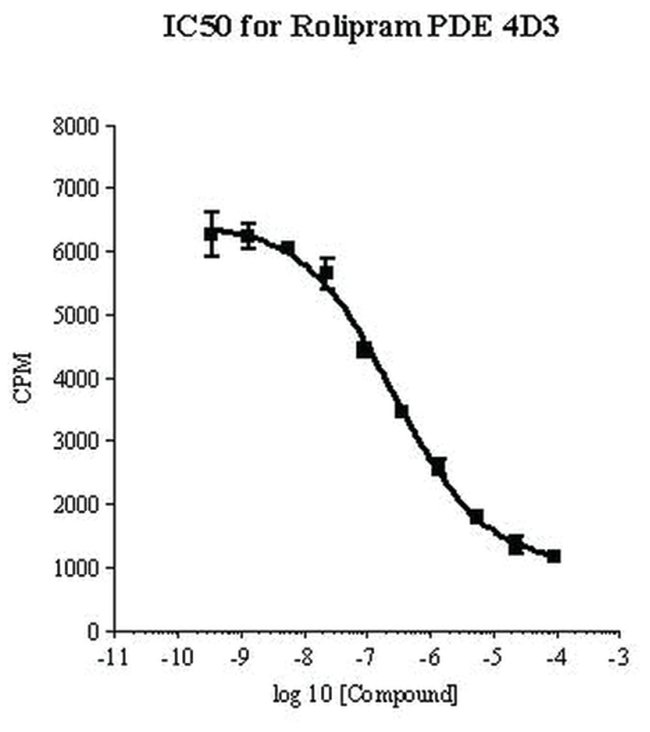 Full-length, recombinant, human phosphodiesterase 4D3 (accession no. L20970) fused at the N-terminus to a His·Tag™ sequence and expressed in S. frugiperda insect cells using a baculovirus expression system. Supplied as a partially purified preparation.
