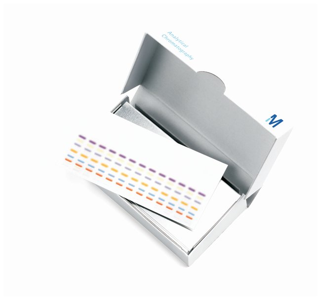 Combination of unmodified silica gel 60 and polymeric binder for hard and adherent surface, resistant to crack and damageDense plate coating ensuring narrow bands and maximum sample separation efficiencyLayer thickness of 250μm with mean particle size of 10 to 12μmDisposableFibre case packagingIn-process control in drug synthesisIdentity and stability testing of drugsQuality control of pharmaceuticals, food and environmental samplesResidue analysis in food and environmental sample