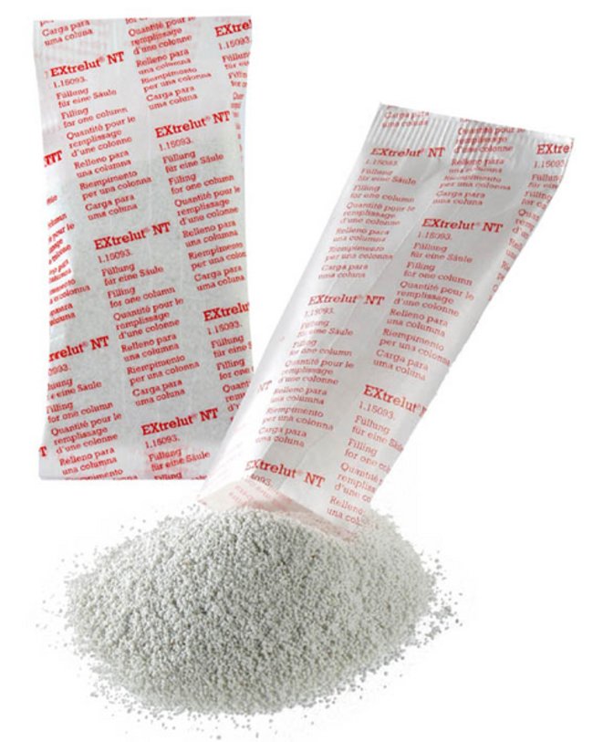 Extrelut™ NT simplifies liquid-liquid extraction in its most effective form by using a chemically inert, wide-pore and highly pure diatomaceous earth based solid phase. Depending on the sample volume three types of columns are available: Extrelut™ NT1 can take up a maximum of one ml, Extrelut™ NT3 threemL and Extrelut™ NT20 up to twentymL of sample.
