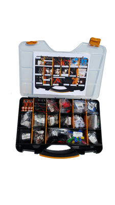 Electricity Box^ Electricity Box, Junior Engineering, has assortment of motors, bulbs, sockets and much more comes in a handy divided utility case, Contains: batteries, battery holders, various bulbs, various sockets, buzzers, motors, switches, and hook-up wire. 117 pcs in total.