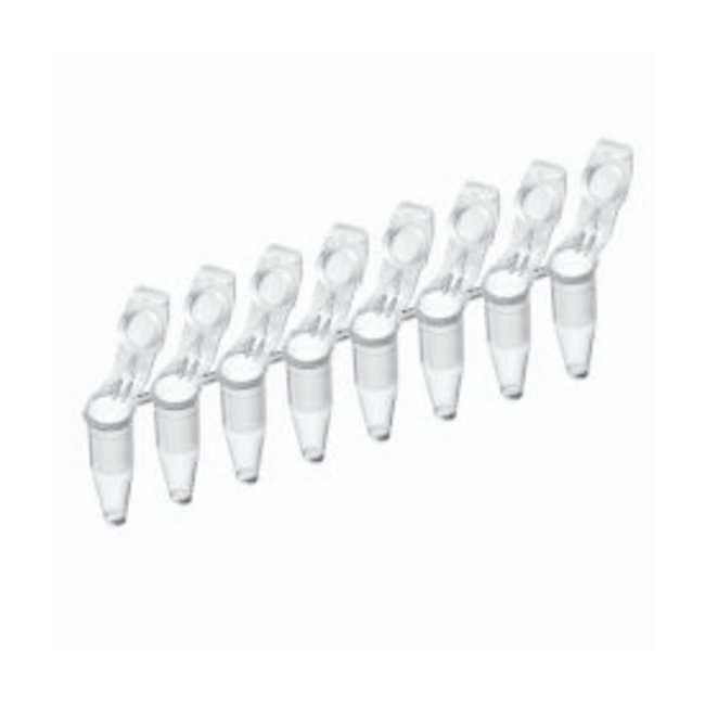 0.2mL PCR Tube Strips, 8-Tube Strip; 120/Pk, Hinged caps open to a 90° angle—lids will not cover adjacent tubes in thermal cycler block, Case of 120