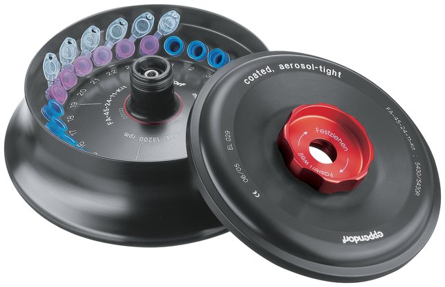 Aerosol-tight rotors (05-401-503, 05-400-023 and 05-401-505) feature a distinct red rotor lid screw and red ring inside the rotor for easy identification. Tube adapters are available separately.Standard 30-place RotorsCapacity: 30 × 1.5/2.0mL Molecular-grade Max. Speed/RCF: 14,000rpm/20,8170xGAvailable with aerosol-tight lid for use with hazardous samples (05-401-503), or with plastic lid for basic applications (05-400-019)PTFE-coated for high chemical resistance and easy cleaning 24-place High-speed Fixed-angle RotorPTFE-coated for high chemical resistance and easy cleaningCapacity: 24 × 1.5/2.0mL tubesMax. Speed/RCF: 17,500rpm/30,1300xGIncludes aerosol-tight lid for hazardous sample workCheck tube stability before use; Eppendorf 1.5mL Flex-Tube™ or Safe-Lock™ Tubes recommended2-place Swinging Bucket Microplate RotorSafely spins two standard microplatesMax. Speed/RCF: 4680rpm/22,040xGLoading height of 29mm is suitable for all types of MTP or PCR platesWindshielded design and drop-on lid ensure virtually silent centrifugation 15mL/50mL Conical Tube RotorCapacity: 6 × 15mL or 6 × 50mL conical tubesMax. Speed/RCF: 7830rpm/7,197xGAdapters for 15 and 50mL conical tubes included50mL adapter also accommodates 50mL skirted conical tubes 24-place Spin Column Kit RotorCapacity: 24 × spin columns or 24 × 1.5/2.0mL tubesMax. Speed/RCF: 13,200rpm/19,090xGUnique high rim design supports open tube lids during centrifugation; lids will not tear offAerosol-tight lid for hazardous samples PCR Strip RotorCapacity: 8 × 8 PCR tube strips or 64 × 0.2mL PCR tubesMax. Speed/RCF: 11,800rpm/13,5480xGIncludes removable adapters that can be used as a tube rack for pipetting Cryotube RotorIdeal for tissue culture labs that need to spin down samples before cryo conservationAccepts up to 18 cryo vialsMax. Speed/RCF: 8900rpm/83,200xGIncludes adapters to accommodate tubes with 16.9 or 13.4mm diameterCertificationsAerosol-tight rotors are tested and certified by the Health Protection Agency (Porton Down, UK)
