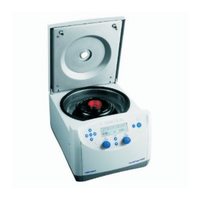 Spins micro, PCR and cryogenic tubes like a microcentrifuge. Handles microplates and conical tubes like a larger centrifuge. Eight rotor options make this a versatile performer in the lab or coldroom. Ventilated.Capacity: 300mL (6 × 50mL), 60mL (30 × 2.0mL), or 2 × MicroplatesMax. speed/RCF: 17,500rpm/30,130×GMenu-driven operation with large backlit LCD displayVariable speed control from 100 to 17,500rpm in 100rpm incrementsTimer: 30 sec. to 99 hr. 59 min. with HOLD for continuous run50-program memory with 5 keys for one-touch recall of routine programsSelectable menu language (English, French, Spanish or German)“At-Spin” functions, adjustable end-of-run alarm, adjustable SHORT-SPIN, speed parameter lockCompact footprintSafety FeaturesAutomatic rotor recognition with speed limitationLoad imbalance detectionOne-finger lid closureSoft brake function to protect delicate samplesThis product(s) resides on a Fisher Scientific GSA or VA contract. If you are viewing this page as a nonregistered user, the price(s) displayed is List Price. To view your GSA or VA contract pricing, log in using your account number, or become a registered user by contacting one of our Customer Service teams. You can also view your contract price by searching for this item(s) on GSA Advantage. To place an order, contact Fisher Scientific Customer Service.