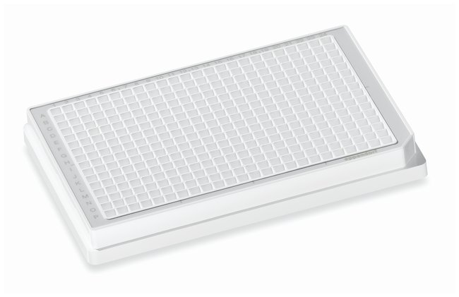 With the easy-to-read OptiTrack™ matrix and a clarity, unique and unbeaten for polypropylene microplates, the identification of the correct plate or an individual well is easier, less error-prone and up to 30% faster.Highest transparency for better sample visibility OptiTrack™ matrix for easy and fast well identificationg-safe™ for time saving centrifugation up to 6000xgRecoverMax™ well design for maximum sample recoveryReduced risk for cross-contamination due to smooth contours that reduce capillary effects in well corners (“wicking”)Raised rims for effective sealingBlack and white microplates for improved sensitivity in fluorescence and luminescence assaysMade from polypropylene (PP) for high chemical resistanceBatch certified in PCR clean and sterile qualityPCR clean plates are free of human DNA, DNase, RNase and PCR inhibitors Microplate 384, 80 plates (5 x 16)Microplate 384/FWell color: clearOptiTrack border color: whiteTotal well volume: 150μLWorking volume: 10-120μLApplications: storing and analyzing samples Flat bottom excellent for optical measurements and microscopic examinationsMicroplate 384/VWell color: clearOptiTrack border color: whiteTotal well volume: 140μLWorking volume: 5-120μLApplications: storing and analyzing samplesConical V-bottom ideal when working with small sample volumes and when maximum sample recovery is neededAlso recommended for precipitation of low concentrated samples by centrifugationComplianceManufactured in ISO certified clean room conditions. Each batch is tested and certified individually.