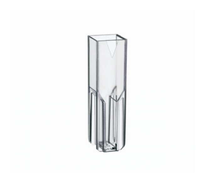 Disposable cuvettes made of clear plastic with a light transmission of 300 nm to 900 nm. The Vis cuvettes are the perfect tool for applications outside of the UV range, for example, colorimetric protein assays (Bradford, Lowry, etc.), determining of the optical density of bacterial cultures (OD 600 methods), kinetic, and fluorescence measurements.