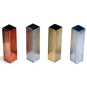 Square specimen set is used for density and specific gravity studies. Set of four includes aluminum, copper, steel, and brass cylinders. Includes a storage box and activity guide.